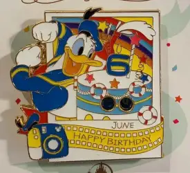 June - Donald Duck is an Open Edition pin from the SDR - Happy Birthday Series pin series. It was originally released on , 2019 and was available from Shanghai Disney Resort .