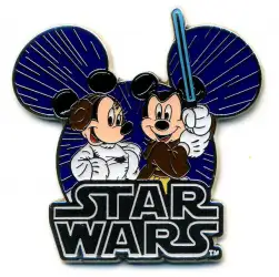 Jedi Mickey & Princess Minnie is an Open Edition pin from the Star Wars pin series. It was originally released in June, 2013 and was available from Disney Store Japan .