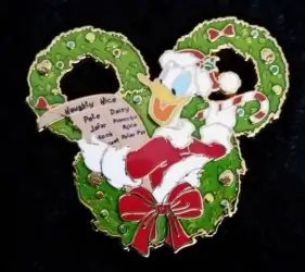 Donald is a Limited Release pin from the 2014 Happy Holidays Wreath Mystery Collection pin series. It was originally released on , 2014 and was available from Multiple Sources (WDW, DLR, etc.).