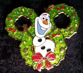 Olaf is a Limited Release pin from the 2014 Happy Holidays Wreath Mystery Collection pin series. It was originally released on , 2014 and was available from Multiple Sources (WDW, DLR, etc.).