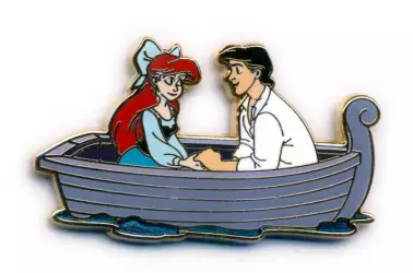 Kiss the Girl Pin Set - Ariel with Prince Eric in a Boat is an Open Edition pin in the Kiss the Girl Pin Set - Full Set 3-pin set from the The Little Mermaid 30th Anniversary pin series. It was originally released on , 2019 and was available from Multiple Sources (WDW, DLR, etc.).