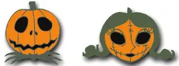Jack and Sally Pumpkins is a Limited Edition (LE) 150 pin from the Jack and Sally Pumpkin Lanyard Set pin series. It was originally released on , 2010 and was available from Disney Studio Store Hollywood / Soda Fountain .