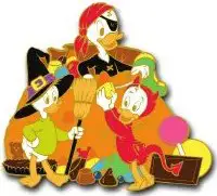 Huey, Dewey and Louie in Halloween Costumes is a Limited Edition (LE) 300 pin from the Halloween pin series. It was originally released on , 2010 and was available from Disney Studio Store Hollywood / Soda Fountain .