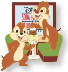 Chip and Dale is a Limited Edition (LE) 300 pin from the Soda Fountain Booth pin series. It was originally released on , 2011 and was available from Disney Studio Store Hollywood / Soda Fountain .