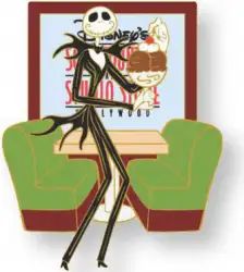 Jack Skellington is a Limited Edition (LE) 300 pin from the Soda Fountain Booth pin series. It was originally released on , 2011 and was available from Disney Studio Store Hollywood / Soda Fountain .