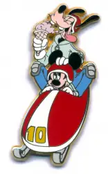 Mickey & Goofy Riding in a Bobsled is an Open Edition pin from the Winter Sports Series pin series. It was originally released on , 2002 and was available from Disneyland Resort Paris .