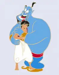 Aladdin & Genie is an Open Edition pin from the Aladdin Hugs pin series. It was originally released on , 2020 and was available from Disneyland Resort Paris .