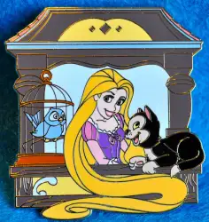 Rapunzel w/Figaro at Fantasy Faire Window is a Limited Edition (LE) 250 pin from the Rapunzel at Disneyland pin series. It was originally released on , 2014 and was available from Walt Disney Imagineering .