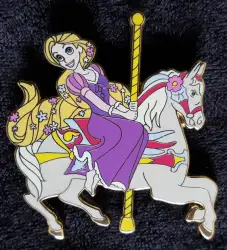 Rapunzel Riding Jingles the Horse is a Limited Edition (LE) 250 pin from the Rapunzel at Disneyland pin series. It was originally released on , 2014 and was available from Walt Disney Imagineering .