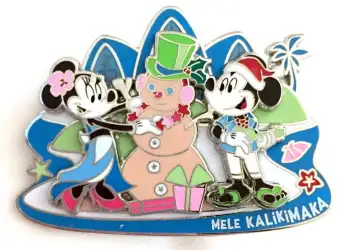 Mickey and Minnie Mele Kalikimaka is a Limited Edition (LE) 1000 pin from the Mele Kalikimaka pin series. It was originally released on , 2019 and was available from Disney Vacation Club .