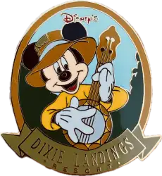 Dixie Landings (Mickey with Banjo) is an Open Edition pin from the Walt Disney World Resort Hotels Pre-ODPT Assortment pin series. It was originally released on , 1999 and was available from Walt Disney World .