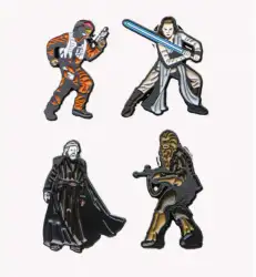 Pin features Luke Skywalker , Chewbacca , Rey and Poe Dameron from Episode VII: The Last Jedi