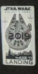 Millennium Falcon Landing is a Limited Edition (LE) 500 pin from the Galaxy's Edge Club 33 pin series. It was originally released on , 2019 and was available from Walt Disney World .