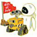 Wall-E and Eve is a Limited Edition (LE) 300 pin from the 4th of July/Independence Day pin series. It was originally released on , 2011 and was available from Disney Studio Store Hollywood / Soda Fountain .