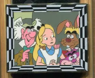 Pin features Alice , The Cheshire Cat , The Mad Hatter and The March Hare from Alice in Wonderland (movie)