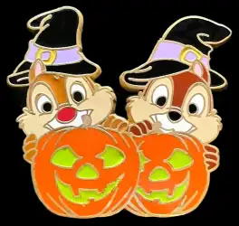 Chip & Dale hiding behind Pumpkins is an Open Edition pin from the Halloween 2004 pin series. It was originally released on , 2004 and was available from Disneyland Resort Paris .
