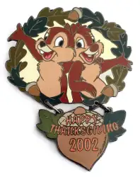 Chip & Dale Acorn Dangle is a Limited Edition (LE) 2500 pin from the Happy Thanksgiving 2002 pin series. It was originally released on , 2002 and was available from Disneyland Resort .