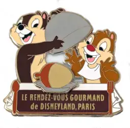 Chip & Dale - Le Gourmand Rendez-vous is a Limited Edition (LE) 500 pin from the Le Rendez-Vous Gourmand pin series. It was originally released on , 2019 and was available from Disneyland Resort Paris .