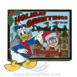 Donald Duck is a Limited Edition (LE) 1000 pin from the Holiday Greetings Postcard 2007 pin series. It was originally released on , 2007 and was available from Disneyland Resort .