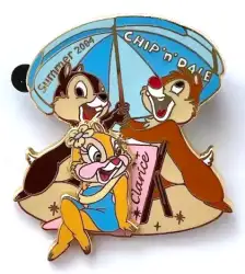 Clarice, Chip & Dale - Beachside Umbrella is a Limited Edition (LE) 1000 pin from the Mickey & Pals - Summer 2004 pin series. It was originally released in June, 2004 and was available from an Officially Licensed Disney trading pin vendor (see description for more information).