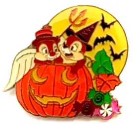Chip & Dale in Pumpkin is an Open Edition pin from the Halloween 2009 pin series. It was originally released on , 2009 and was available from Hong Kong Disneyland .