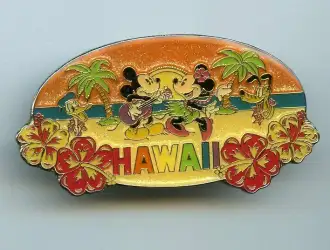 Mickey, Minnie, Pluto and Donald is an Open Edition pin from the Disney Store Hawaii pin series. It was available from Disney Store US .