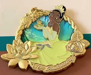 Tiana and Frog Naveen is a Limited Edition (LE) 250 pin from the Princess and the Frog 10th Anniversary pin series. It was originally released on , 2019 and was available from Disney Employee Center .