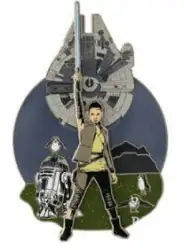 Pin features Rey from Episode VII: The Last Jedi