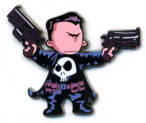 Punisher is a Limited Release pin from the NYCC 2015 - Marvel Skottie Young pin series. It was originally released on , 2015 and was available from an Officially Licensed Disney trading pin vendor (see description for more information).