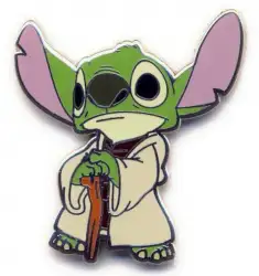 Stitch as Yoda is an Open Edition pin from the Star wars - Mystery Pin Collection pin series. It was originally released on , 2008 and was available from Multiple Sources (WDW, DLR, etc.).