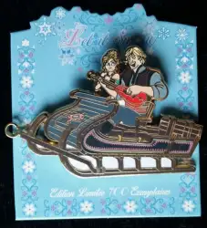 Anna & Kristoff in Sleigh is a Limited Edition (LE) 700 pin from the Let It Snow pin series. It was originally released on , 2014 and was available from Disneyland Resort Paris .