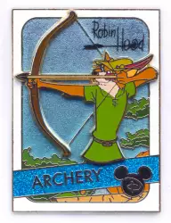 Robin Hood - Archery is a Limited Edition (LE) 4000 pin from the All Stars Trading Card Series pin series. It was originally released on , 2020 and was available from Multiple Sources (WDW, DLR, etc.).