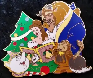 Beauty and the Beast Carolers is a Limited Edition (LE) 400 pin from the Christmas Carolers pin series. It was originally released on , 2014 and was available from Disney Studio Store Hollywood / Soda Fountain .