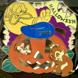 Chip & Dale Pumpkin with Donald is a Limited Edition (LE) 1300 pin from the Halloween 2003 pin series. It was originally released on , 2003 and was available from an Officially Licensed Disney trading pin vendor (see description for more information).