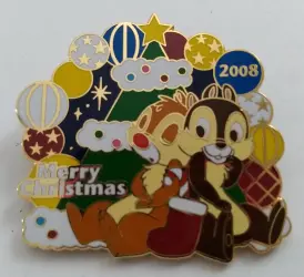 Merry Christmas 2008 - Chip & Dale is a Limited Edition (LE) 400 pin from the Christmas 2008 pin series. It was originally released on , 2008 and was available from an Officially Licensed Disney trading pin vendor (see description for more information).