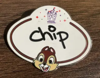 Chip is an Open Edition pin from the Name Tag Mystery Collection pin series. It was originally released on , 2010 and was available from Hong Kong Disneyland .