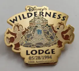 10th Anniversary - Chip & Dale is a Limited Edition (LE) 500 pin from the Disney's Wilderness Lodge Anniversaries pin series. It was originally released on , 2004 and was available from Walt Disney World .