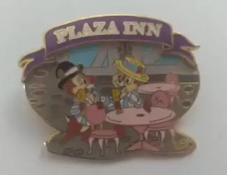 Plaza Inn is a Limited Edition (LE) 300 pin from the Chip 'n Dale Dining Pin pin series. It was originally released on , 2009 and was available from Walt Disney Imagineering .