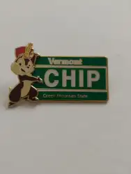 Vermont - Chip - Green Mountain State is a Limited Edition (LE) 2000 pin from the Across America License Plate Series pin series. It was originally released on , 2003 and was available from Disney Store Japan .