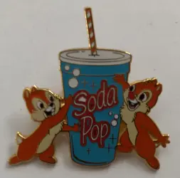 Chip & Dale Soda Pop is a Limited Edition (LE) 750 pin from the Concession series Disney pin series. It was originally released on , 2003 and was available from Disneyland Resort .