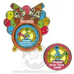 Happy New Year's Eve 2007/Day 2008 Spinner - Chip and Dale is a Limited Edition (LE) 1000 pin from the New Year's Eve/Day pin series. It was originally released on , 2007 and was available from Disneyland Resort .