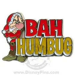 Bah Humbug - Grumpy is an Open Edition pin from the Christmas 2008 pin series. It was originally released on , 2008 and was available from Multiple Sources (WDW, DLR, etc.).