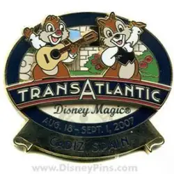 Chip dale is a Limited Edition (LE) 1500 pin from the Disney Cruise Line Destinations: Transatlantic Cruise 2007 pin series. It was originally released on , 2007 and was available from Disney Cruise Line .