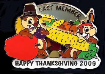 Chip & Dale Thanksgiving 2009 is a Limited Edition (LE) 1500 pin from the Thanksgiving pin series. It was originally released on , 2009 and was available from Theme Park Cast Member Exclusive .