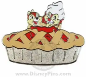 2008 - Chip & Dale in Cherry Pie is a Limited Edition (LE) 300 pin from the Thanksgiving pin series. It was originally released on , 2008 and was available from Disney Studio Store Hollywood / Soda Fountain .