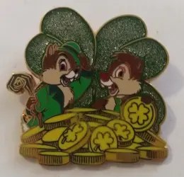 2010 - Chip and Dale with Pile of Gold Coins is a Limited Edition (LE) 250 pin from the St. Patrick's Day Disney pin series. It was originally released on , 2010 and was available from Disney Store US .