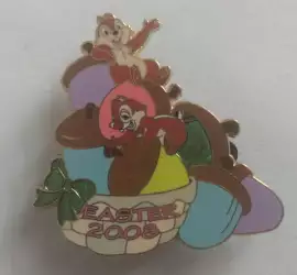 Chip and Dale Acorn Easter Basket is a Limited Edition (LE) 300 pin from the Easter 2008 pin series. It was originally released on , 2008 and was available from Disney Studio Store Hollywood / Soda Fountain .