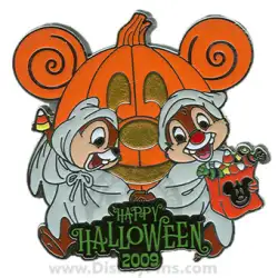 Chip & Dale w/ Mickey Head Pumpkin is a Limited Edition (LE) 2750 pin from the Halloween 2009 pin series. It was originally released on , 2009 and was available from Multiple Sources (WDW, DLR, etc.).