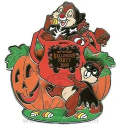 Chip & Dale w/ Candy Bag & Pumpkin is a Limited Edition (LE) 2000 pin from the Mickey's Not So Scary Halloween Party (MNSSHP) 2009 pin series. It was originally released on , 2009 and was available from Walt Disney World .