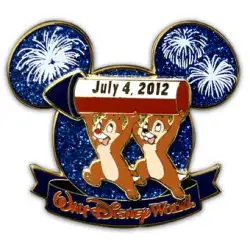 Chip and Dale with Rocket Firework is a Limited Edition (LE) 1500 pin from the 4th of July/Independence Day pin series. It was originally released on , 2012 and was available from Walt Disney World .